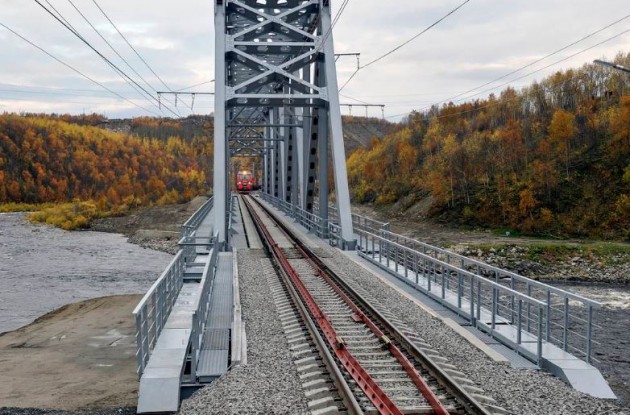 28 сентября открылось движение поездов по новому железнодорожному мосту через реку Кола на 1436 км перегона Кола – Выходной в Мурманской области.