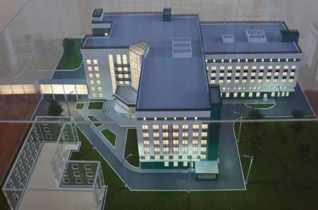Корпус будет состоять из трех крыльев, имеющих общую центральную зону. Между ним и существующим главным корпусом больничного комплекса предусмотрен надземный переход на уровне второго этажа.