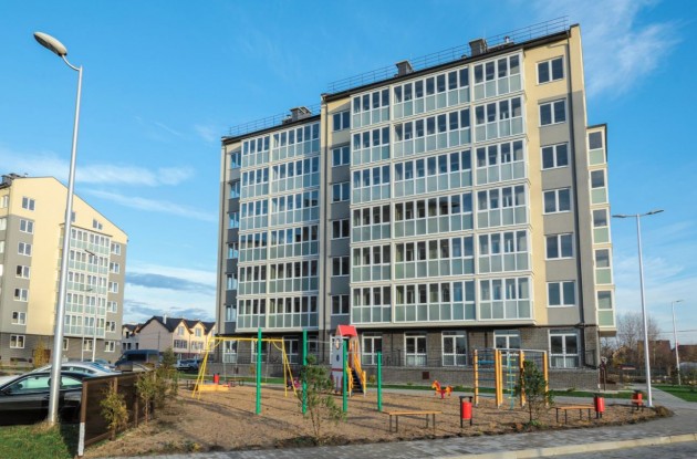 Благоустройство придомовой территории включает в себя организацию детских игровых и спортивных площадок, зоны для отдыха и озеленение. Предусмотрена гостевая парковка.
