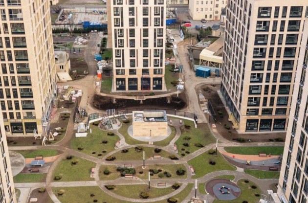 Придомовую территорию застройщик благоустроил – здесь появились спортивные и игровые площадки, элементы ландшафтного дизайна и зеленые насаждения. Внутреннее убранство ЖК спроектировано индивидуально, секции оборудованы скоростными лифтами импортного производства, в зданиях будут работать консьержи.