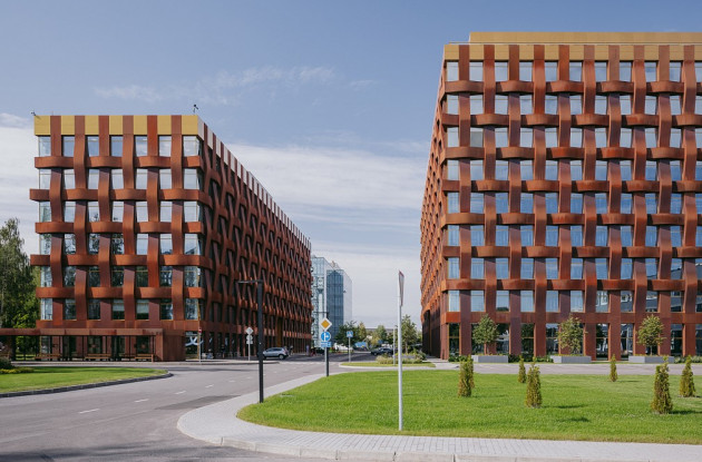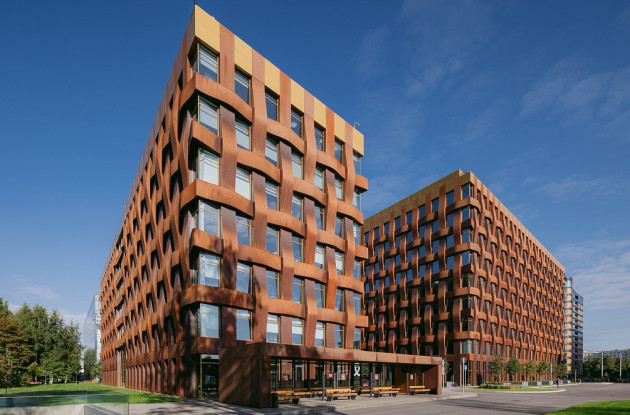 Архитектурный проект разработан немецким бюро TCHOBAN VOSS Architekten. В новом БЦ фасад выполнен из стекла и стали кортен. Благодаря своим редким свойствам, кортен со временем меняет свой цвет.