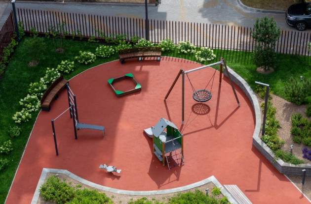 Отделка холлов дизайнерская. На первых этажах отведены места под коммерцию, а в подземной части созданы 69 машино-мест. Элементами безопасности стали закрытая территории и консьерж-сервис.