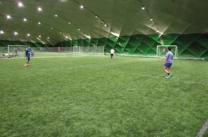 Для занятий футболом построено поле-трансформер: 2 поля для мини-футбола( 35*20м.) либо поле для футбола 7*7 (размеры 46*35 м.). Покрытие поля последнего поколения (искусственный газон с ворсом длиной 40 мм). Устроены трибуны для зрителей. Есть 6 просторных раздевалок с душевыми. Также в помещении расположен зал с татами для занятий единоборствами, борьбой и пр.