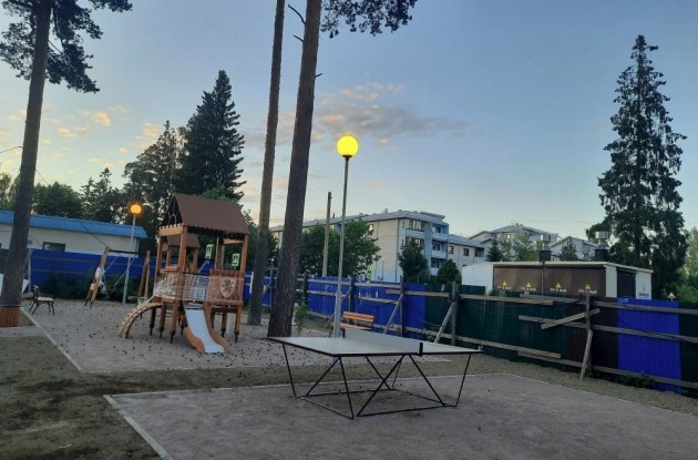 Во дворе проводилось благоустройство. На территории предусмотрены игровые, спортивные площадки с уличными тренажерами и зоны отдыха со скамейками. Для жителей организован открытый паркинг.