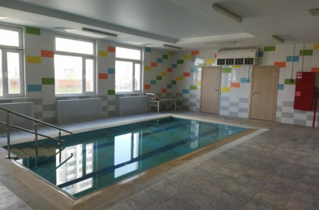 Также в здании садика расположены медицинский блок, кухня и бассейн со вспомогательными помещениями, зал для музыкальных занятий, кружковые, физкультурный зал и на первом этаже отдельное помещение охраны. На прилегающей территории оборудованы площадки для прогулок с теневыми навесами и игровым оборудованием.