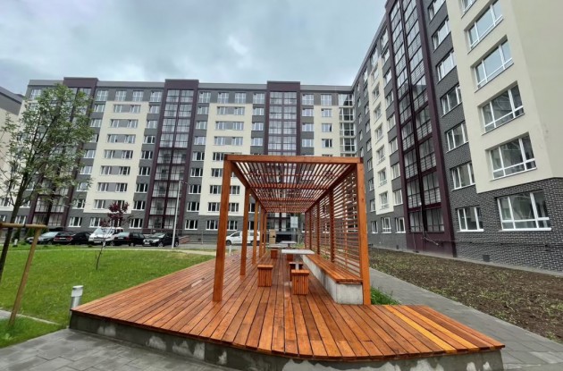 Введен в эксплуатацию девятиэтажный 5-и секционный дом из кирпича, рассчитанный на 180 квартир. В доме представлены 1, 2, 3-комнатные квартиры. Дом имеет отличное расположение и инсоляцию. Окна выходят во двор и в сторону лесного массива, а также питьевых озер.