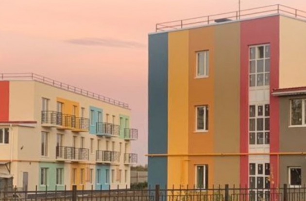 Здания строились из кирпича и газобетона, а снаружи отделаны штукатуркой и окрашены в яркие цвета.