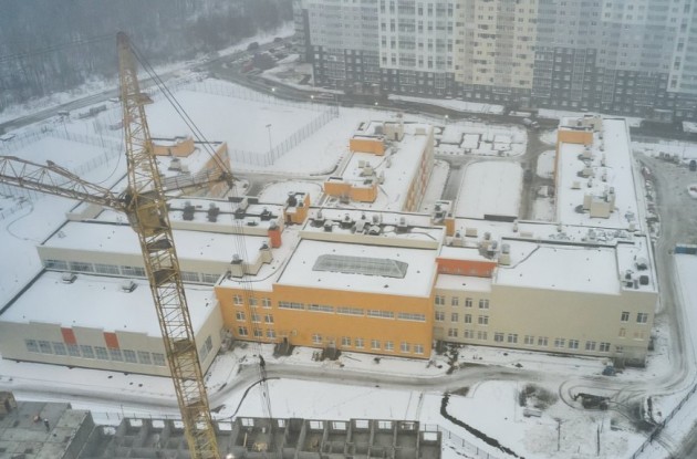 Школа состоит из пяти блоков, три из которых учебные. В четвертом находятся спортивный и актовый залы, библиотека, столовая и медкабинет, а в пятом – два бассейна. Вокруг учебного комплекса оформлены пространства для игр, общения и новых спортивных рекордов.