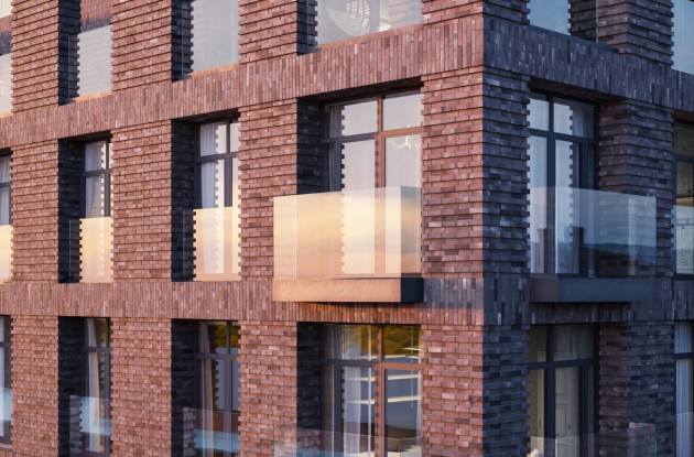 Необычные тёмные фасады «Лермонтовского 54» напоминают о промышленной архитектуре, которая была популярна в Санкт-Петербурге в конце XIX и начале XX века. Материал отделки — прочный клинкерный кирпич, который прослужит до 100 лет.