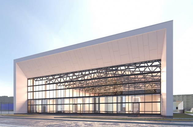Конфигурация нового спортивного комплекса максимально проста и эффективна. В плане здание имеет простую прямоугольную форму. Планировка комплекса учитывает возможность проведения соревнований различного уровня и учебно-тренировочного процесса. Здание перекрыто большепролетными конструкциями металлическими фермами с пролетом 45 метров. Примерно четверть здания отведена под размещение входной группы, раздевалок, душевых, тренерских и вспомогательных помещений. Основная часть здания представлена большим многофункциональным залом для размещения футбольных полей с искусственным покрытием. Для проведения соревнований и тренировочных занятий снаружи здания на территории комплекса предусмотрены спортивные плоскостные сооружения.