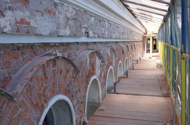 Металлические оконные заполнения второго яруса верхнего храма воссоздадут по сохранившимся аналогам с сохранением габаритов, материала и исторического рисунка расстекловки.