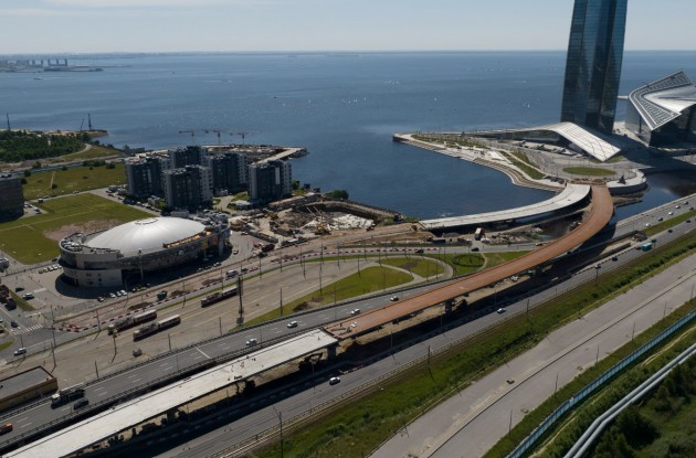 Госстройнадзор выдал разрешение на ввод 2-й этапа реконструкции Приморского шоссе. Подключение делового квартала "Лахта центр". Этап 2.2 - строительство эстакадных съездов к Приморскому шоссе (северный съезд) и к Приморскому пр. и ул. Савушкина (южный съезд).