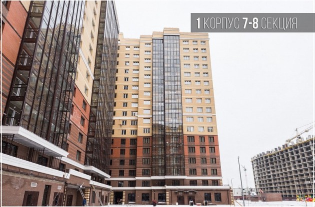 Несущие стены представляют собой монолитные конструкции; наружные, согласно информации в проектной декларации, выполнены из газобетонных блоков. Остекление балконов и лоджий будет витражным. Корпус 1 имеет 10 секций по 17 этажей каждая, в нём разместились 1 086 квартир. Возведение этого корпуса началось во 2 квартале 2016 г., согласно разрешению на строительство от 18 мая 2016 г., срок действия которого — до 18 мая 2021 г. Корпус №2 вместит 528 квартир, почти половина из которых будет представлена студиями (256 лотов), однокомнатных запланировано 80 штук, «двушек» — 128, трёхкомнатных лотов — 64. Корпус №4 рассчитан на 1100 жилых помещений, в состав которых войдут также различные варианты (от студий до 3-хкомнатных).