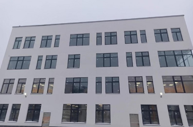Новая четырехэтажная школа с бассейном, площадью 16 590 м2 рассчитана на 550 учащихся с 1 по 11 классы.