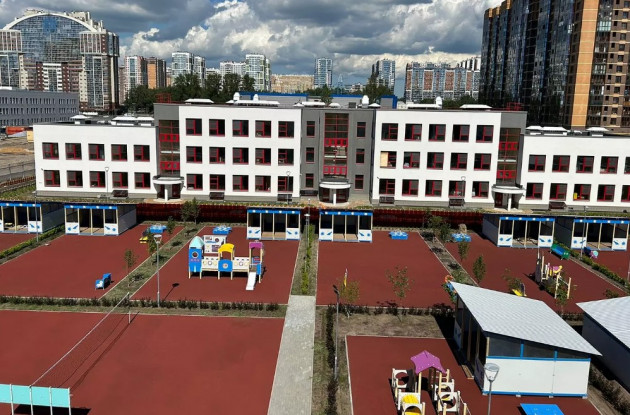 В трехэтажном здании созданы все условия для развития и удобства детей разного возраста. Садик обустроен по современным стандартам, включая бассейн, спортивный и музыкальный залы. Оформление одного садика выдержано в космической стилистике.