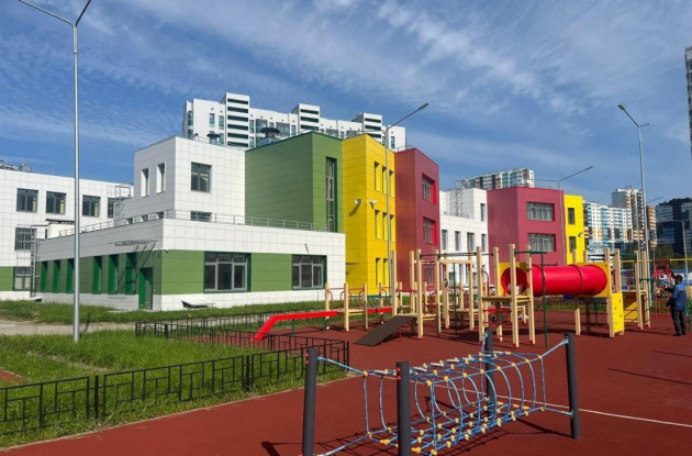 На прилегающем участке 13 тыс. кв. м предусмотрены физкультурно-спортивная зона, площадки отдыха для разных возрастных групп, учебно-опытные площадки, географическая зона.