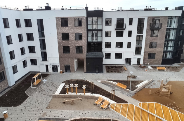 Новостройка представляет собой четырехэтажный жилой дом общей площадью 15 704 кв.м. Здание включает в себя 67 квартир: однокомнатные, двухкомнатные и 9 трехкомнатные.