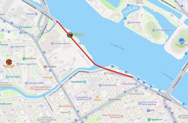 Линейный объект «Набережная Макарова. Автомобильная дорога» протянется на 744,63 м. Это будет магистральная улица общегородского значения второго класса. Протяженность набережной Смоленки до набережной Макарова составит 530 м.