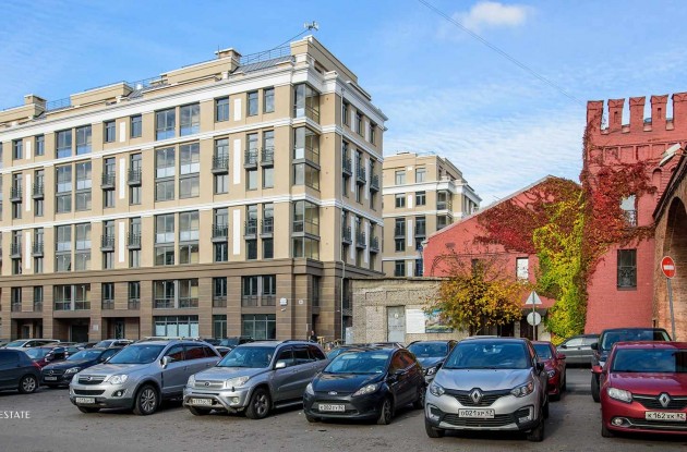Клубный дом построен в 250 м от Невского проспекта. Но здесь не шумно и у