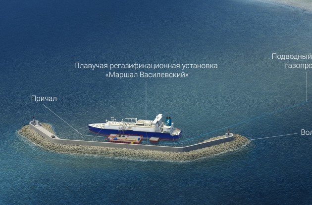 плавучая регазификационная установка в России. Судно перевозит СПГ (емкость