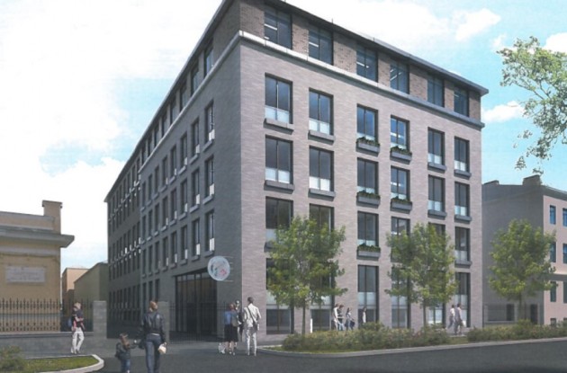 Новый корпус гармонично вписываться в историческую застройку, на фасадах большие оконные проемы чередуются с глухими простенками. Главный вход оформлен натуральным камнем, алюминиевыми витражами, оборудован пандусом.