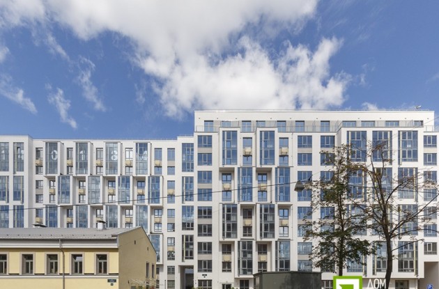 На участке 0,43 га появился 10-этажный дом комфорт-класса. Он трёхсекционный, его общая площадь составила 13 тыс. кв. м. Общее количество квартир — 160 шт. Они распределены по 3-8 на этаж. Высота потолков колеблется от 2,74 до 3,6 м. Заявлена черновая отделка. Фишками стали террасы, а также отсутствие в квартирах несущих стен для легкой перепланировки. В доме работают четыре пассажирских лифта.