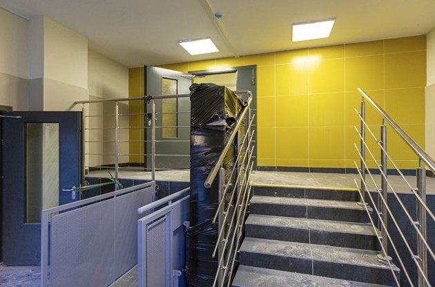 В доме реализован принцип безбарьерной среды для маломобильных групп населения. Входные группы и коридоры первых этажей расположены на уровне земли, без ступеней, бордюров и порогов.