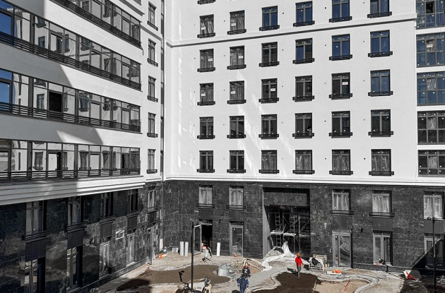 Здание состоит из секций высотой от 4 до 9 этажей. К заселению готово 113 квартиры. Среди лотов однокомнатных - 34, двухкомнатных - 40, трёхкомнатных - 28, четырёхкомнатных - 11. Есть лоты с террасами, эркерами. Площади варьируются от 33,77 до 174,63 квадратных метров. Высота потолков составила 3 метра. Верхний этаж в стиле мансарды имеет потолки 3,5 м. На этаже расположилось в среднем по 5 квартир. Есть подземный паркинг, в котором выделено место для хозяйственных помещений.