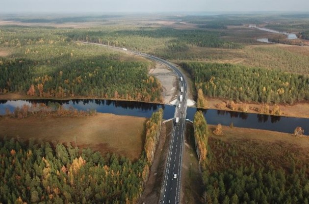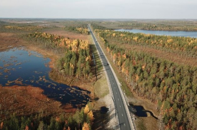 Для улучшения технико-эксплуатационных характеристик дороги III технической категории выполнен значительный объем буровзрывных работ и работ по выторфовыванию. Дорожниками устроены новые насыпи с заменой слабых грунтов в основании дороги, возведена новая конструкция дорожной одежды с применением современных геосинтетических материалов высокого качества.