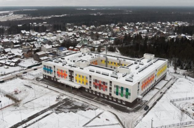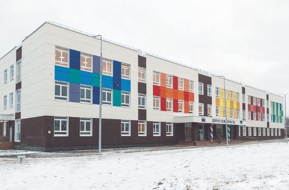 Трёхэтажное кирпичное здание построено по самым современным стандартам: просторные коридоры и классы, актовый и спортивный залы, лифты и панорамные окна, система вентиляции. Предусмотрена возможность обучения детей с ограниченными возможностями здоровья. Отапливает объект собственная газовая котельная. Возле школы предусмотрена физкультурно-спортивная зона, включающая беговую дорожку, универсальную спортивную площадку, площадку для спортивных игр, две гимнастические площадки. Также есть парковка для машин с отдельным заездом для автобусов.