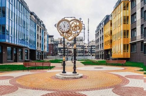 Особая гордость ЖК — тематические уличные часы, установленные на пешеходной зоне между вторым и третьим корпусом. Циферблат располагается внутри сердца цвета латуни и окружен шестеренками.