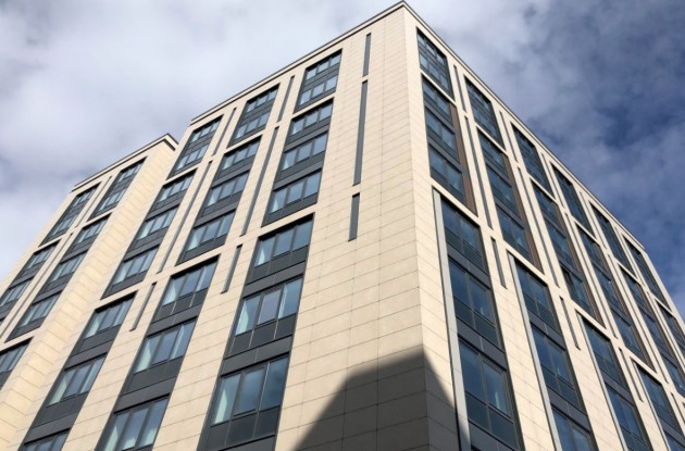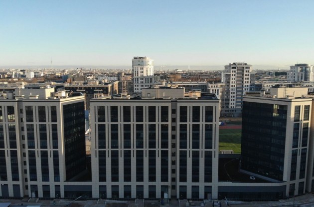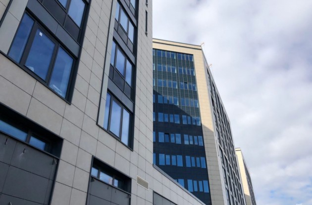 Участок около 8,3 тыс. кв.м находится в собственности у застройщика. На нем возведен гостинично-офисный комплекс с физкультурно-оздоровительным центром и апарт-отелем. СК «Еврострой» построила три 11-этажных стеклянных корпуса, посаженных на одноэтажный стилобат. В них разместились апратаменты площадью от 30 до 78 квадратных метров. Комплекс рассчитан в общей сложности на 432 юнита (студии, одно- и двухкомнатные апартаменты). Первые этажи апарт-отеля отданы под коммерцию. В состав объектов инфраструктуры вошли: кафе, ресторан, магазины, салон красоты, спортзал, зона коворкинг, лобби, ресепшн. Предусмотрено строительство подземного паркинга, кладовых. Застройщик анонсировал, что сервис апарт-отеля будет соответствовать уровню 4*, услуги будут предоставляться по графику 24/7.