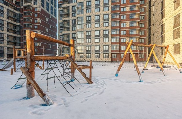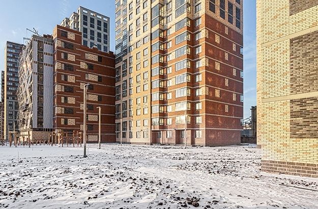 В пяти корпусах первой очереди располагается 931 квартира — от студий до трехкомнатных — площадью от 32 до 78 кв. м.