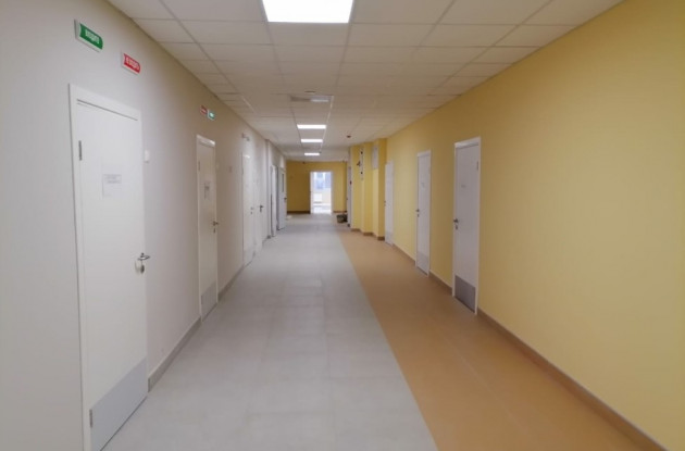 Все помещения, где возможно пребывание пациентов, расположены на первом и втором уровнях здания, административные и служебные помещения расположены также на третьем и в цокольном этажах.