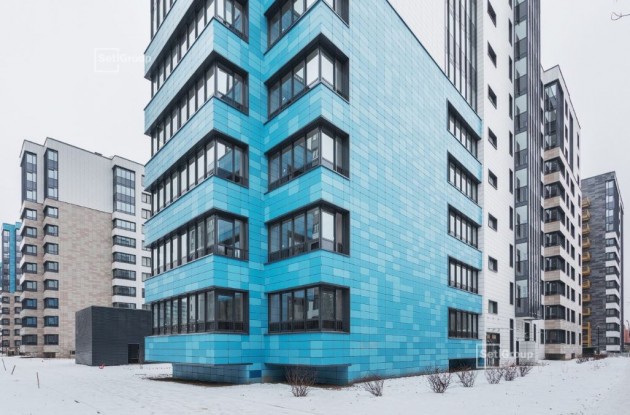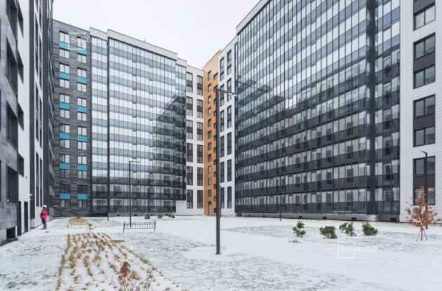 Покупателям доступны одно-, двух-, трехкомнатные планировки и студии. На последнем этаже квартиры с увеличенными оконными проемами и потолками 3,5 метра. На типовом этаже высота — 2,74 метра. Для хранения сезонных вещей застройщик предлагает приобрести кладовую.