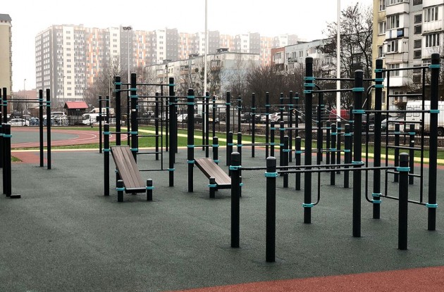 На территории находится стадион с гимнастическим комплексом, баскетбольным, волейбольным полями и футбольной площадкой с искусственной травой, места для отдыха и игр.