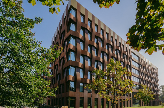 Архитектурный проект разработан немецким бюро TCHOBAN VOSS Architekten. В новом БЦ фасад выполнен из стекла и стали кортен. Благодаря своим редким свойствам, кортен со временем меняет свой цвет.