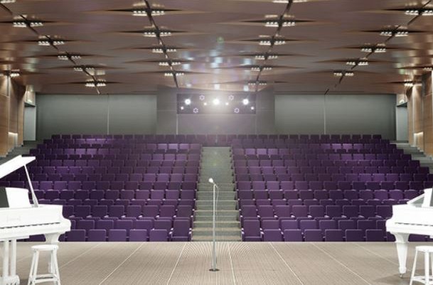 Концертный зал в школе искусств рассчитан на 500 мест. В этой зоне также находится гардероб, холл, сцена, подсобные помещения, костюмерные, комната исполнителей, санузлы, помещение хранения декораций.