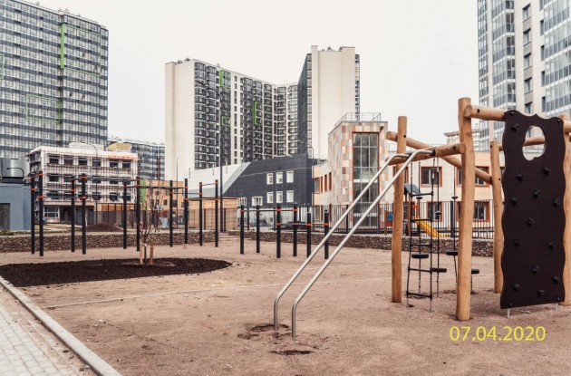 Территория закрыта для машин и обеспечена видеонаблюдением. Во дворе предусмотрены игровые площадки и спортивные зоны с безопасным покрытием. Помимо крытого паркинга, автомобиль можно будет оставить на открытой стоянке, где места отведены и для велосипедов. По периметру двора проложена беговая дорожка. На первых этажах расположены коммерческие помещения общей площадью более 1100 кв. м.