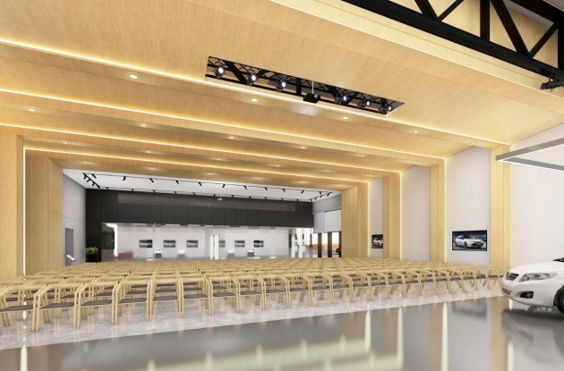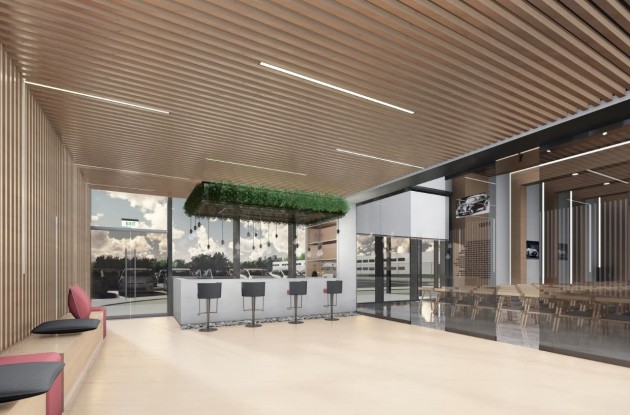 Здание соединяется с производственным корпусом надземной галереей, а в его подземной части предусмотрены резервуары для сбора и использования дождевой воды. Просторные аудитории и конференц-залы, рассчитанные на обучение 500 человек, а также эффектное лобби наполнены воздухом и естественным светом. Центр претендует на сертификат LEED не ниже уровня Silver.