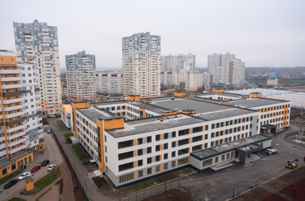 Здание школы разрабатывалось по индивидуальному проекту и включает в себя четырехэтажный учебный корпус и двухэтажный спортивный комплекс общей площадью 40,8 тыс. кв.м. Они соединены между собой переходом. В учебном корпусе разместятся 65 просторных учебных классов, огромная столовая, медицинский блок со стоматологическим кабинетом, актовый зал, масса вспомогательных помещений, в том числе для занятий в секциях и кружках.