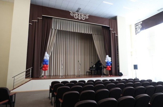 Двухэтажное Т-образное однокорпусное здание с концертным залом на 200 мест, рассчитанное на одномоментное нахождение на двух этажах до 400 учащихся, построено за два года.