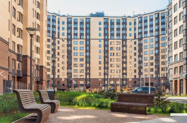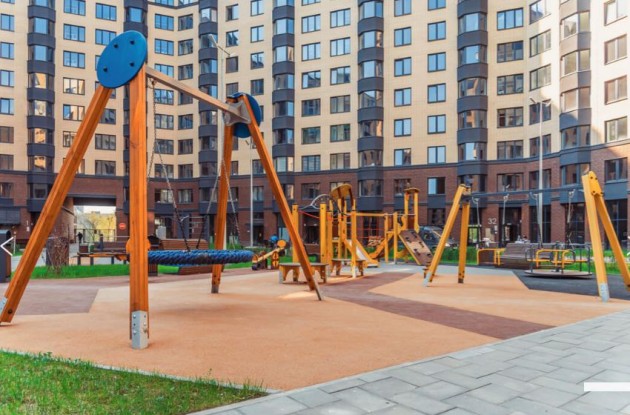 На придомовой территории ЖК «Новое Купчино» выполнено благоустройство: оборудованы детские и спортивные площадки, велодорожки и велопарковки, высажены крупномерные деревья и кустарники, установлены скамейки и перголы для отдыха, уложен газон.