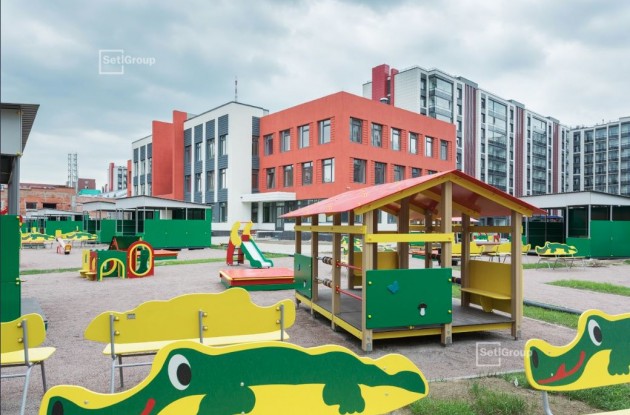Здание для 200 воспитанников возвели в глубине ЖК "Притяжение", ближе к Большому Сампсониевскому проспекту.