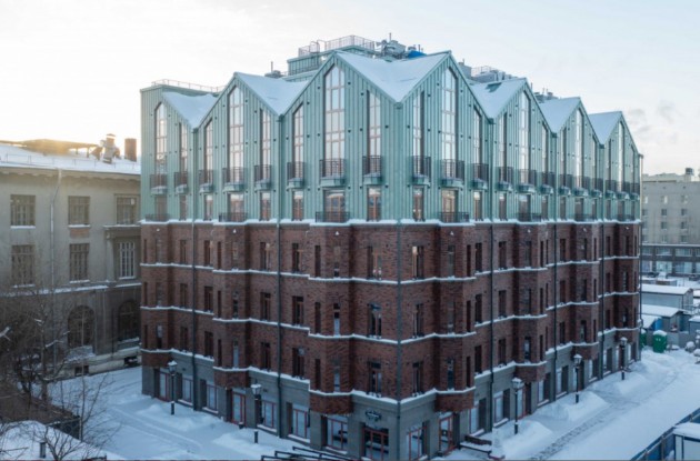 Жилой комплекс площадью 8,8 тыс. кв. м получил название «Артхаус». В отделке фасадов использованы: патинированная медь, гранит, облицовочный кирпич и элементы художественной ковки. В 7-этажном доме расположились 72 квартиры. Площади начинаются от 39,46 кв. м и достигают 83,12 кв. м. в базовом варианте. Высота потолков — 3 метра. Также предусмотрена возможность объединения двух или нескольких квартир, после чего площадь лота может составить до 273,7 кв.м. и содержать от 3 до 7 жилых комнат. Во всех увеличенных планировках оборудованы несколько санузлов, хозблоки, гардеробные.