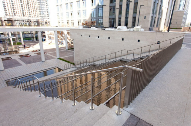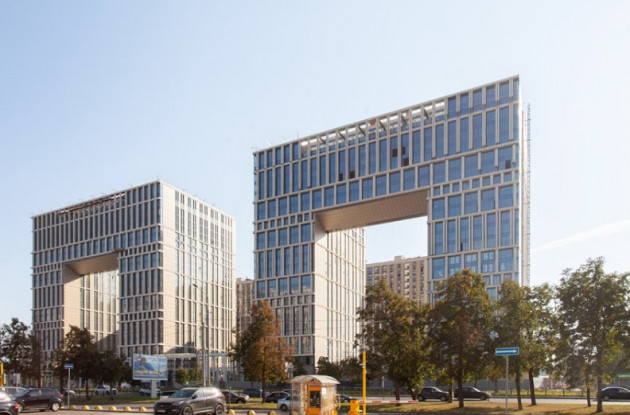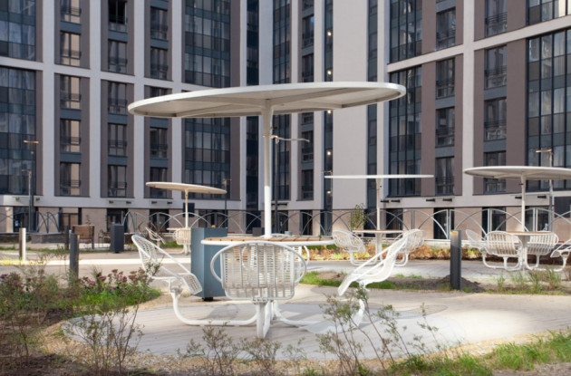 Корпус бизнес-класса также получился достаточно приватным. Здание в форме каре расположилось в отдалении от ул. Типанова. Двор без машин украшает арт-навес, выполненный по мотивам «Солнечного паруса» арки La Defence в Париже.