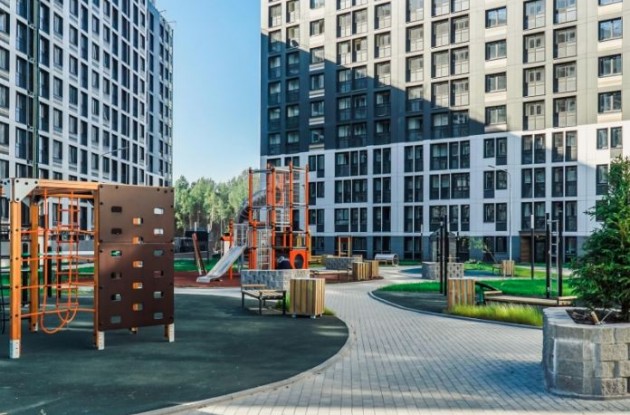 Во дворе обустроены детская площадка и зона для отдыха. В зонах отдыха предусмотрено wi-fi покрытие.