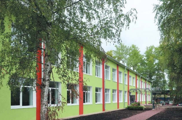 Благоустроена пришкольная территория: строители сделали дорожки, высадили клумбы и газон. Также были проведены работы и по строительству спортивной площадки.