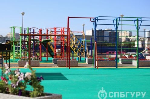 Первый и подземный ярусы новостройки нежилые. На первом размещена коммерческая зона общей площадью более 1124 кв. м – каждое помещения с отдельным входом со стороны улицы. Подземный этаж занят отапливаемой парковкой, что состоит из двух отсеков на 100 машиномест каждый. Из объектов социальной инфраструктуры построен детский сад на 180 мест.