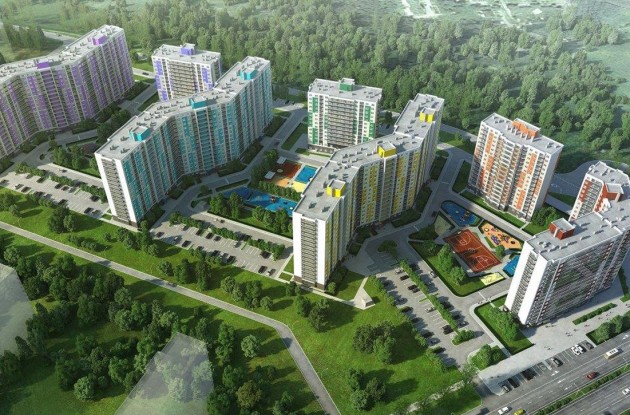 В состав новостройки войдет семь корпусов, выкрашенных в семи цветах радуги. Высота секций переменная - 14-16 этажей. Помимо жилья, возводятся торговые и социальные объекты. Строительство пройдет в несколько этапов.
